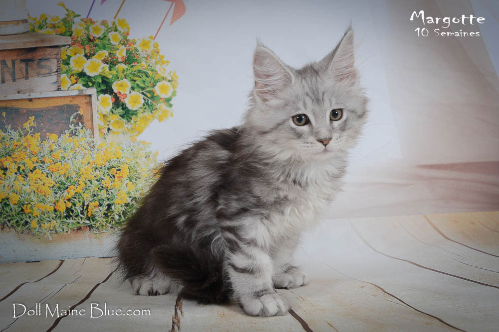 Maine Coon Femelle (Robe: Black tabby and White)